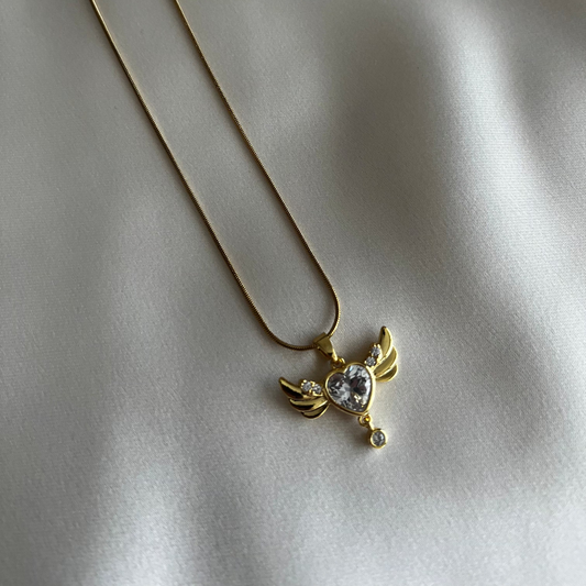 ASC Taşlı Melek Kanat Gold Kolye