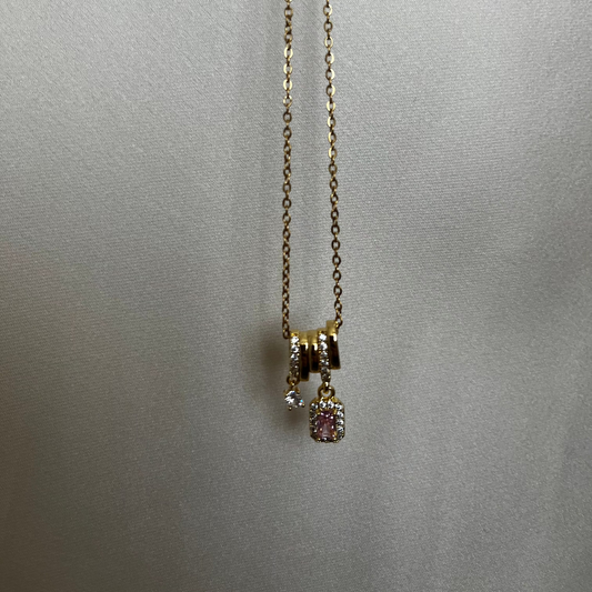 ASC Zarif Pembe Taşlı Gold Kolye