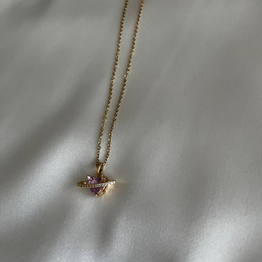 ASC Pembe Taşlı Kalp Gold Kolye