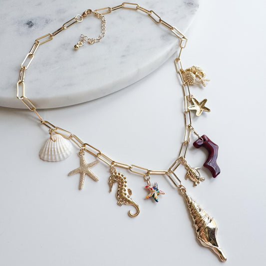 Deniz Altı Temalı Charm Gold Zincirli Kolye