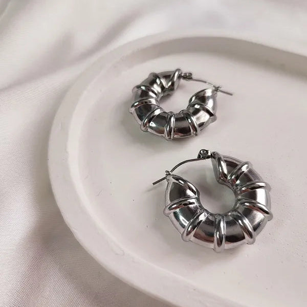 ASC Çelik Silver Boru Tırtıklı Halka Küpe – Modern ve Dinamik Stil Dokunuşu