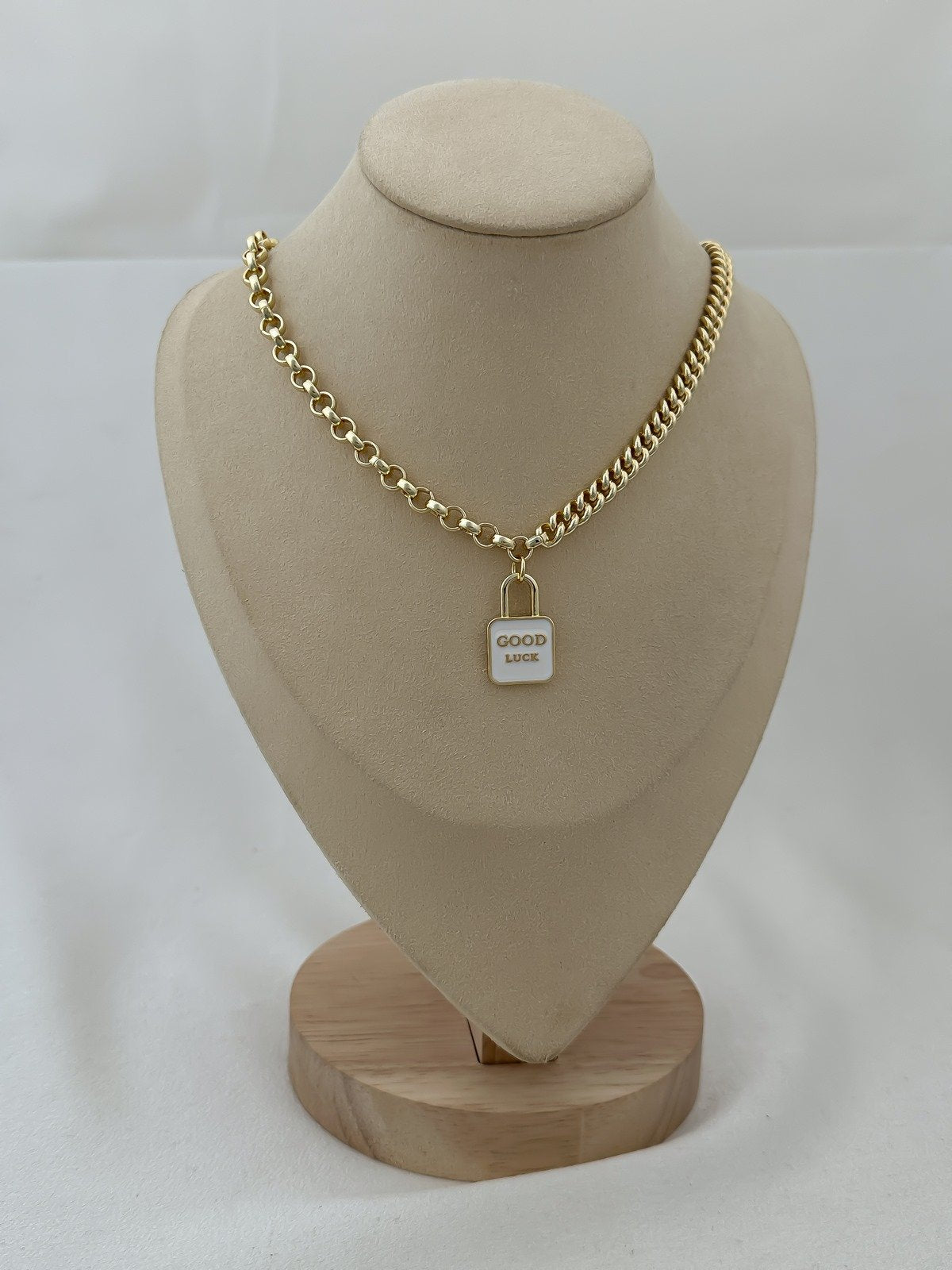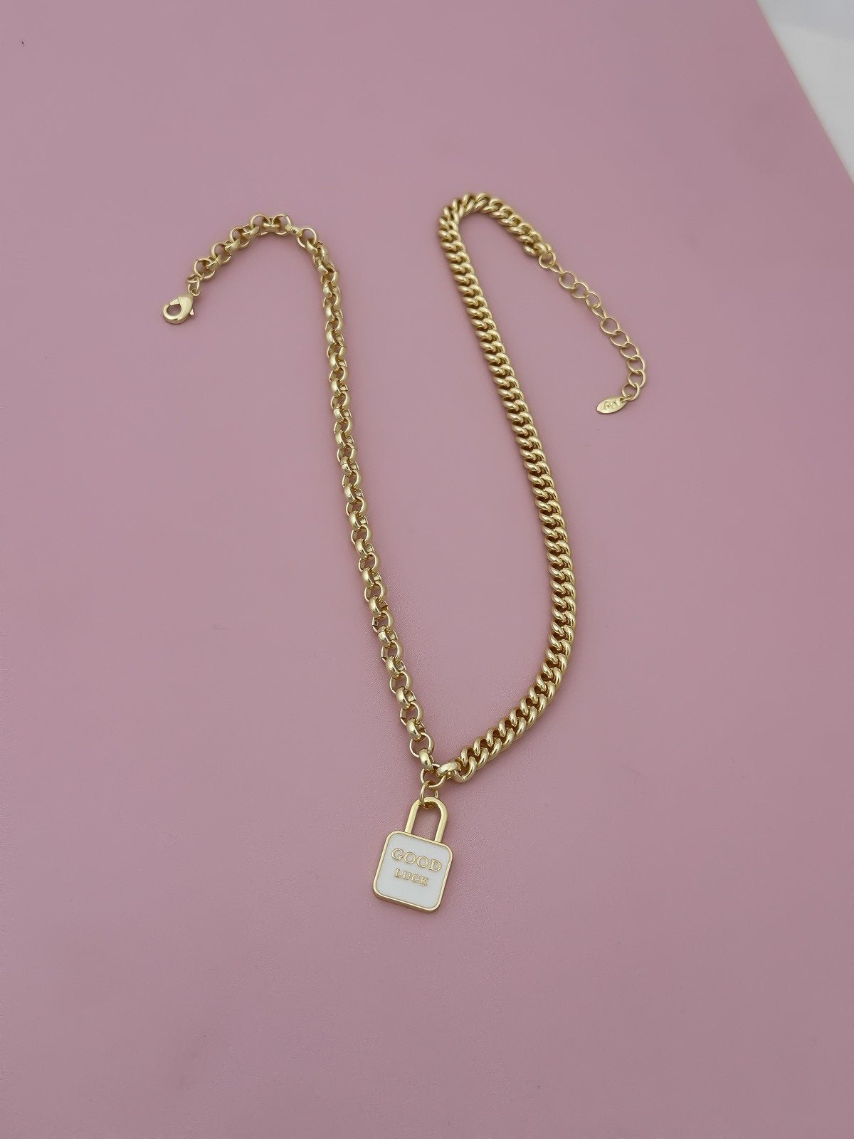 ASC Çift Zincir Beyaz Mineli Yazı Detay Kilit Figür Sallantılı Kolye