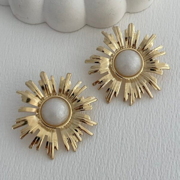 ASC Ortası Beyaz Gold Papatya Tasarım Küpe