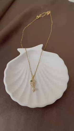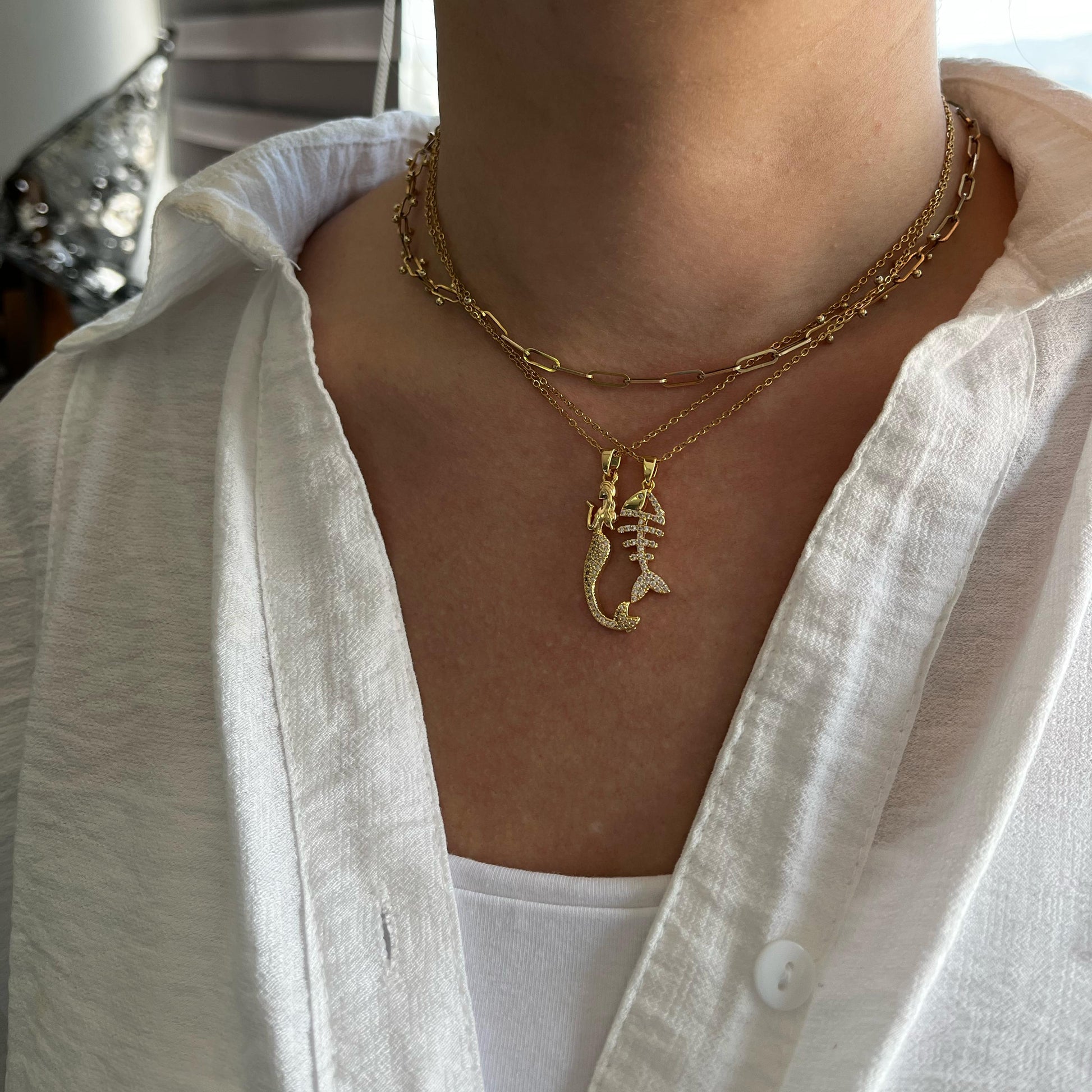 ASC Taşlı Balık Kılçığı Gold Kolye – Modern ve Sıra Dışı Şıklık