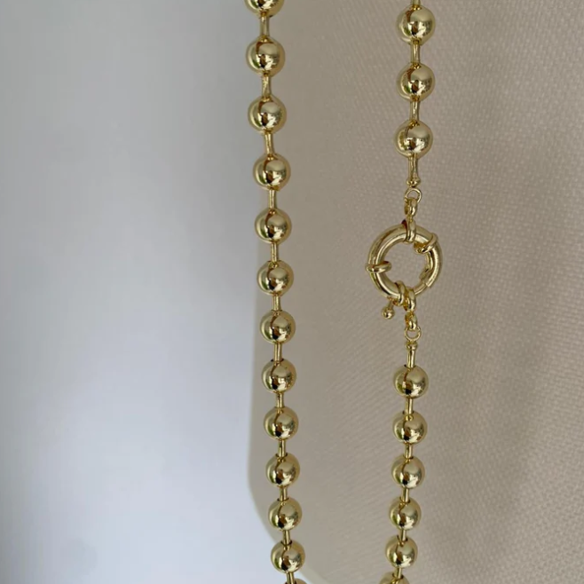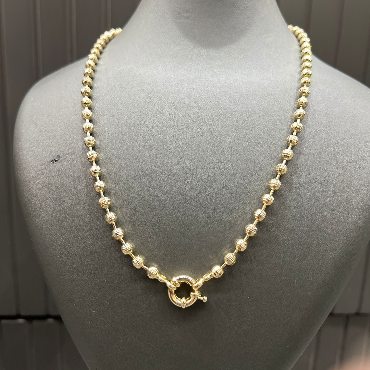Şık gold rengi ve dikkat çekici boncuk dizaynıyla öne çıkan Gold Gemici Düğümü Detaylı Boncuk Kolye, stiline modern bir dokunuş katmak isteyenler için mükemmel bir aksesuardır. Ön kısmındaki gemici düğümü detaylı halka kilit tasarımı, kolyeye hem özgün hem de trend bir görünüm kazandırır.