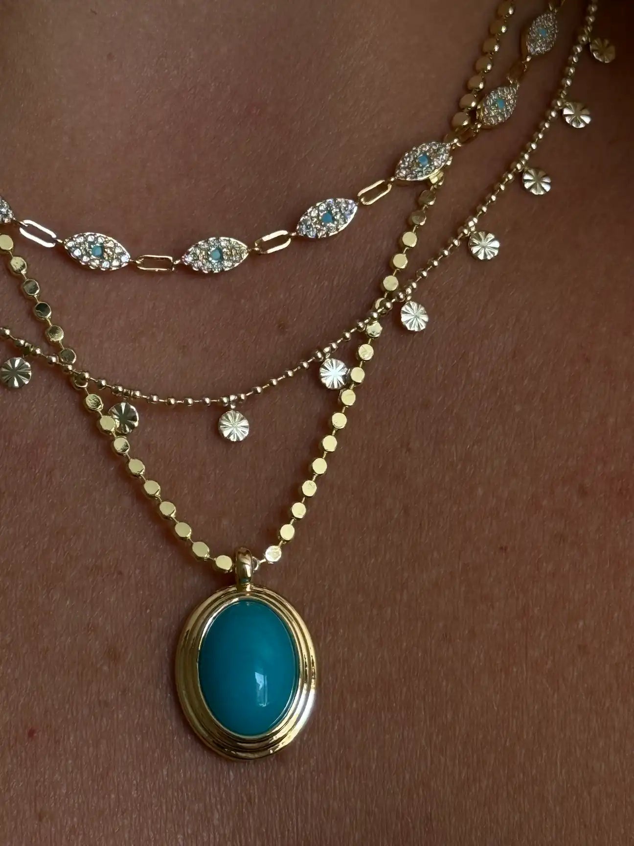 Gold Sıralı Yuvarlak Zincirli Mavi Mineli Kolye