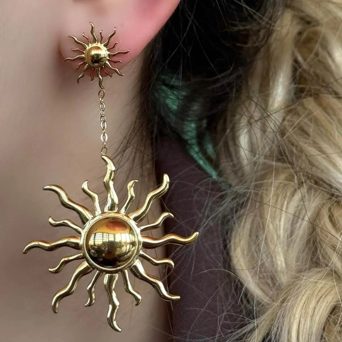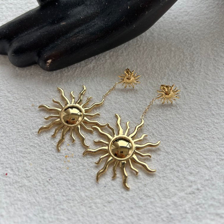 Güneş Figürlü Büyük Boy Kararmaz Çelik Küpe