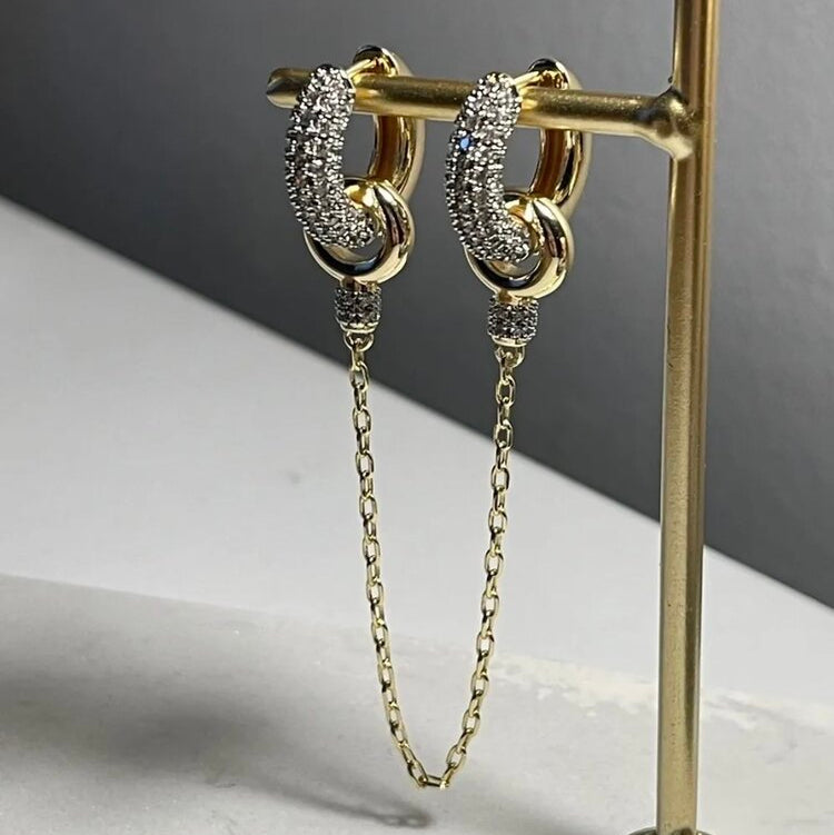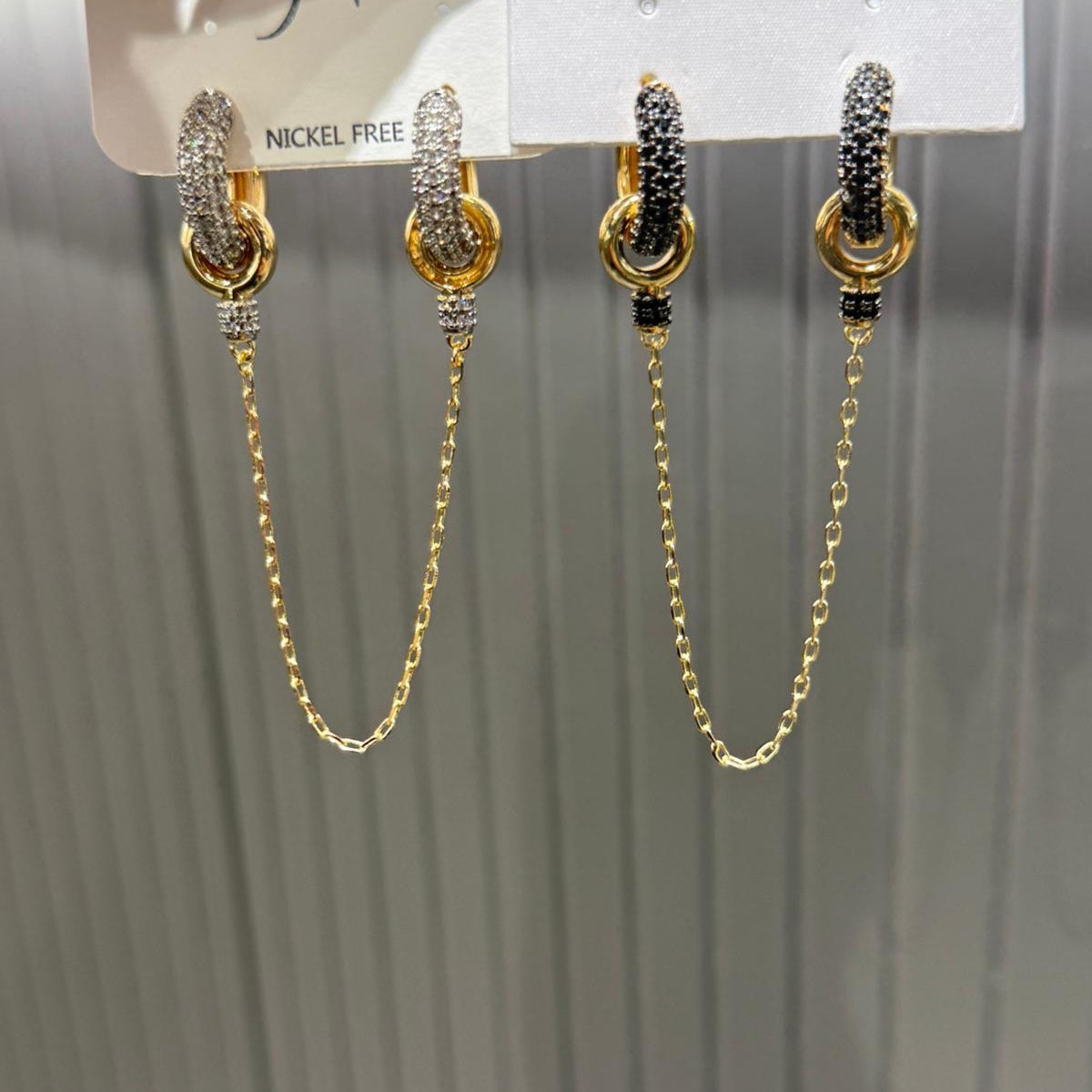 Zarafeti modern detaylarla buluşturan İkili Marka Model Taşlı Halka Küpe, iki parçalı tasarımı ve ışıltılı taş detaylarıyla her stile uyum sağlayan şık bir aksesuardır. Parlak gold tonuyla bütünleşen taşların göz alıcı ışıltısı, küpeye hem sofistike hem de feminen bir hava katar. Günlük kombinlerden özel davetlere kadar birçok ortamda rahatlıkla kullanılabilir.