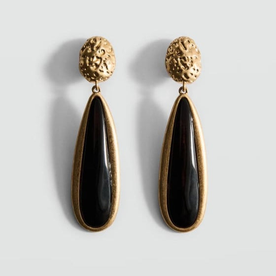 Marka Oval Siyah Mineli Küpe
