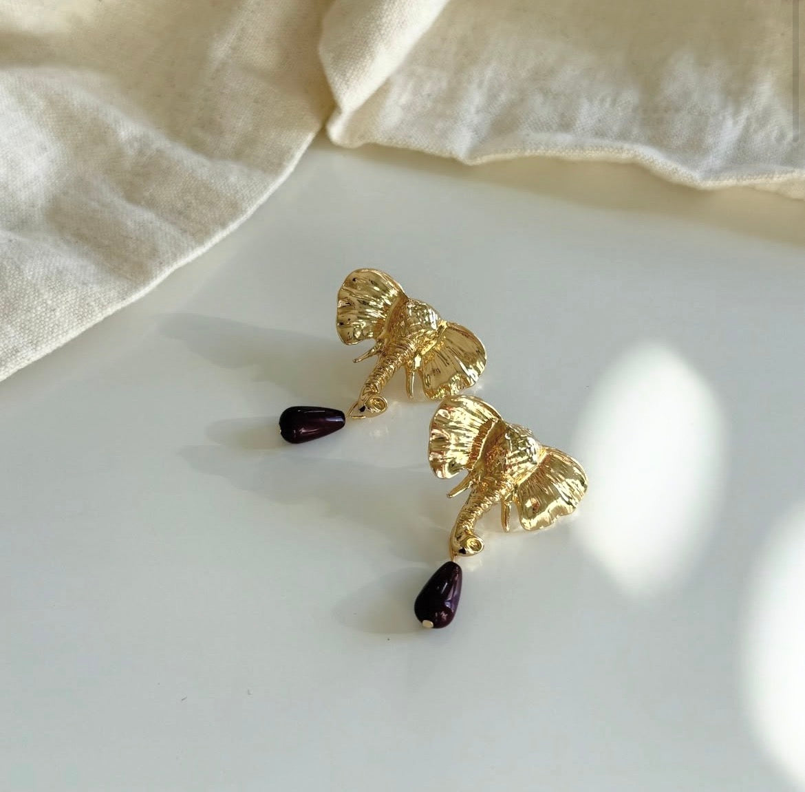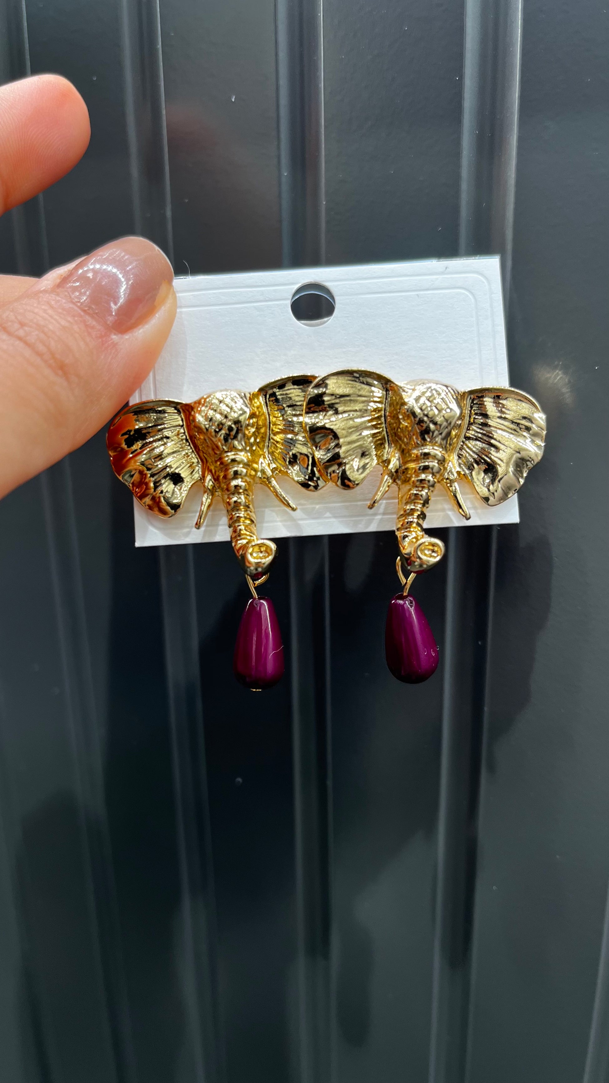 Mürdüm Boncuk Detaylı Gold Fil Küpe
