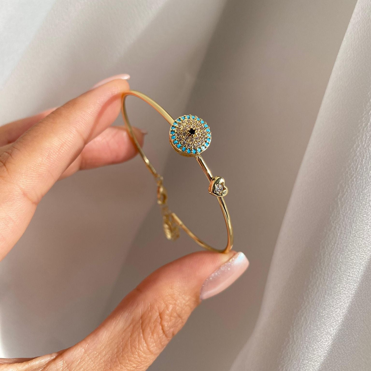 Zarif ve anlamlı tasarımıyla öne çıkan Nazar İnce Kelepçe, minimal şıklığı koruyucu nazar detayıyla buluşturarak etkileyici bir görünüm sunar. İnce formu sayesinde bilekte hafif ve zarif bir duruş sergilerken, nazar figürünün sembolik anlamı olan korunma ve pozitif enerji kombinlerinize anlam katar. Günlük kullanıma uygun olmasıyla her stile kolayca uyum sağlar.