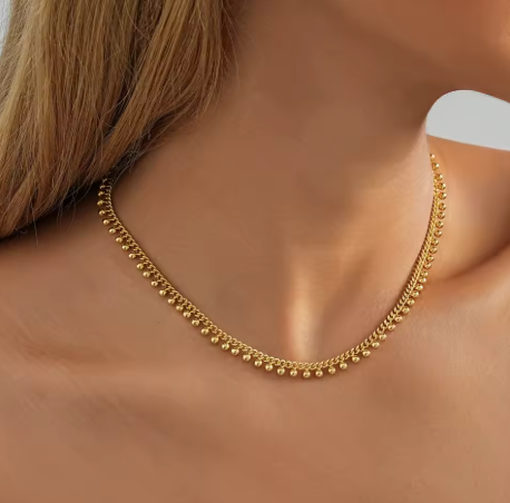 Özenle tasarlanmış sıra topçuk detayları ile dikkat çeken Özel Seri Sıra Topçuk Detaylı Kolye, sade ama etkileyici bir şıklık sunar. Simetrik topçuk dizilimi kolyeye zarif bir hareket kazandırırken, modern çizgileriyle her stile kolayca uyum sağlar.