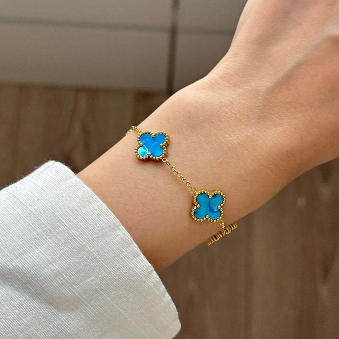 Unisex Mavi Renk Yonca Model Çelik Bileklik