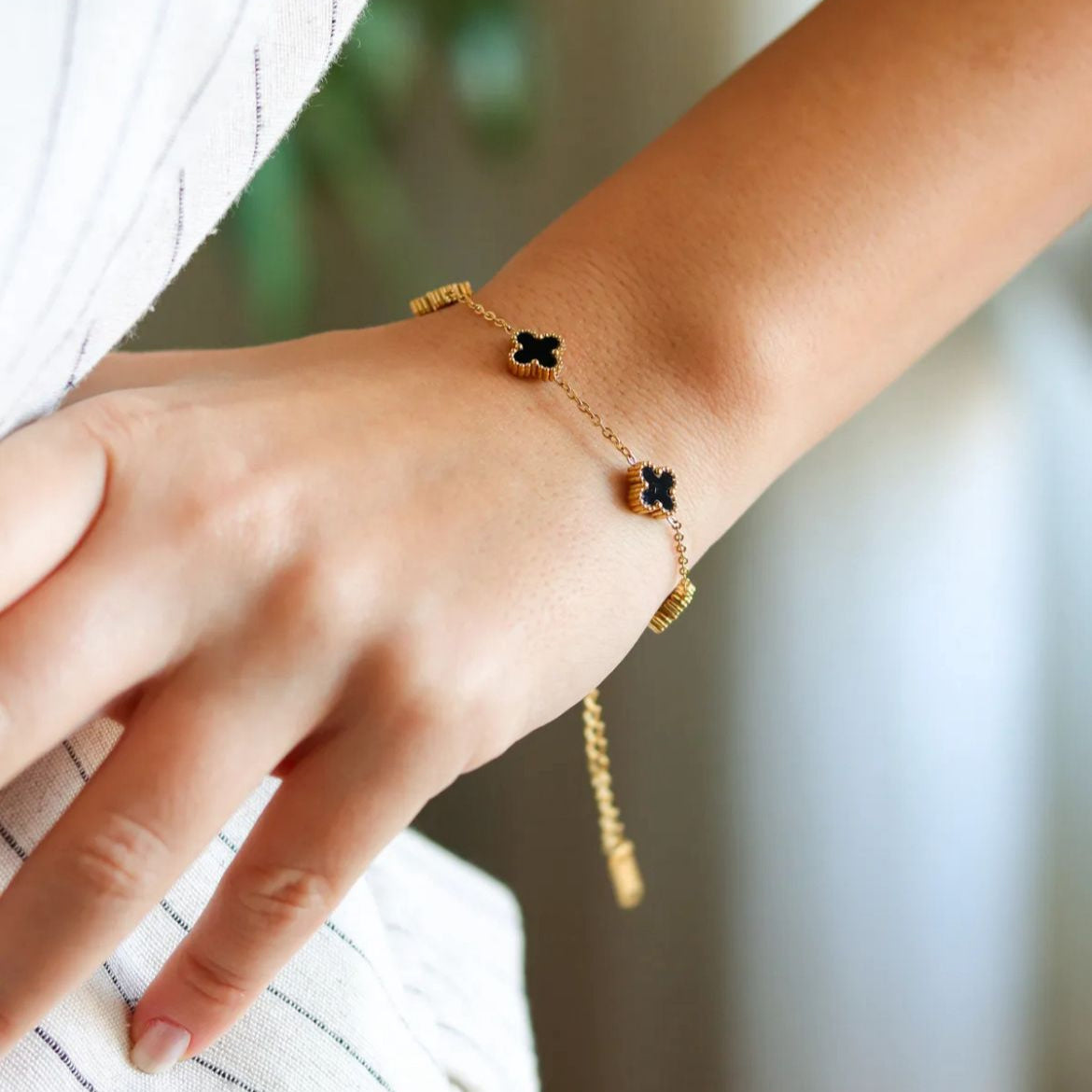 Unisex Siyah Renk Yonca Model Çelik Bileklik