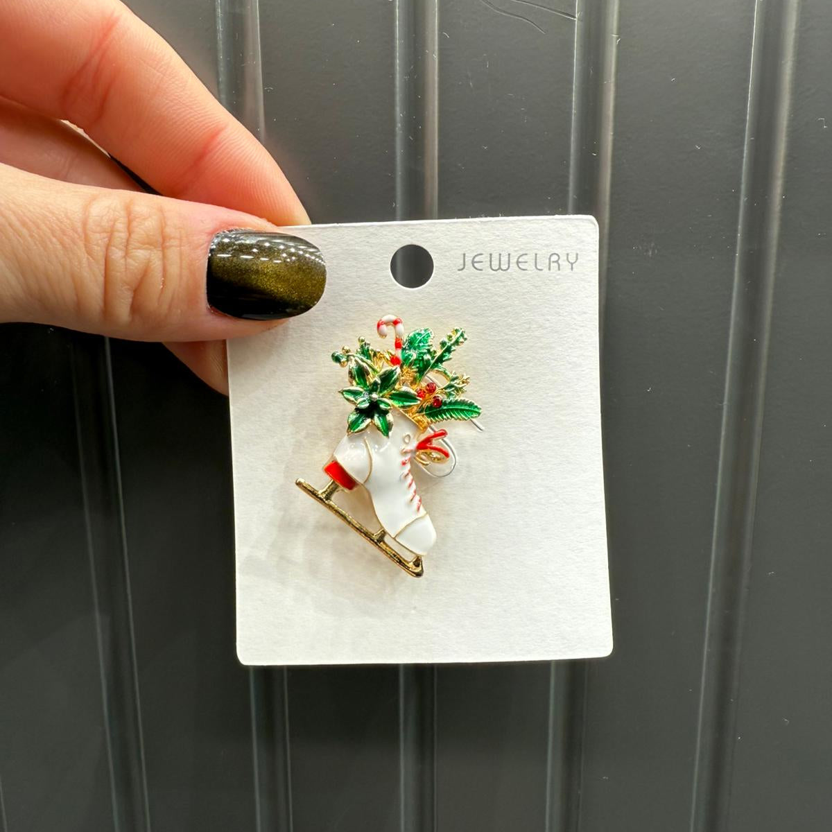 Yeni yıl ruhunu stilinize taşıyan Paten Broş, göz alıcı taşları ve canlı renkleriyle yılbaşı kombinlerinin vazgeçilmez aksesuarı olmaya aday. Hediye paketi formundaki şık tasarım, hem sevimli hem de zarif bir görünüm sunarak kıyafetlere neşeli bir dokunuş katar.