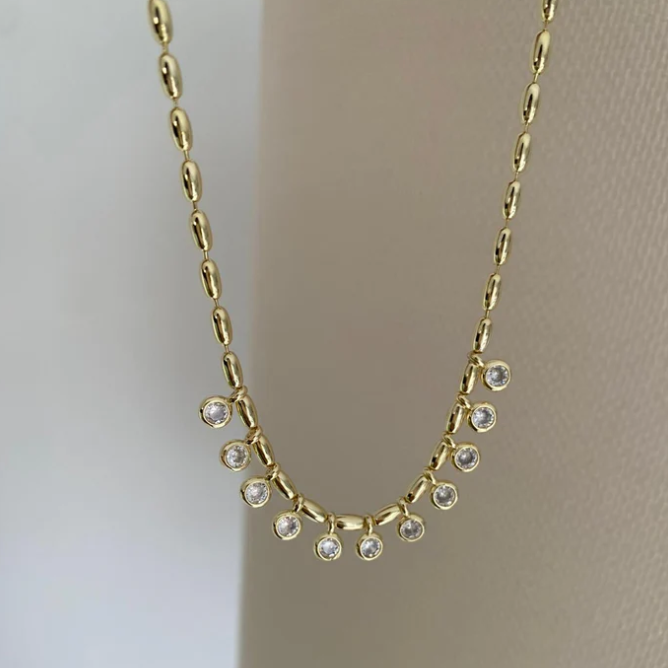 Parlak taşların özenle yerleştirildiği bu kolye, hem minimal hem de dikkat çekici duruşuyla hediyelik kolye arayanlar, ışıltılı taş kolye modelleri isteyenler ve şık aksesuar sevenler için ideal bir tercihtir.