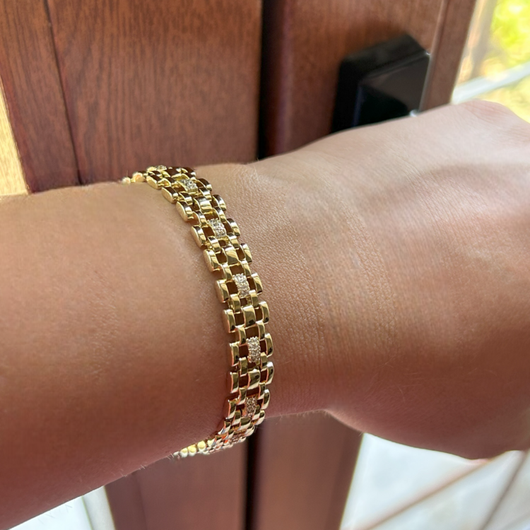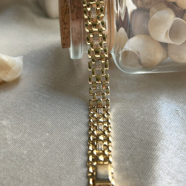 Zirkon Taş Detaylı İnce Zincir Altın Renkli Xuping Bileklik