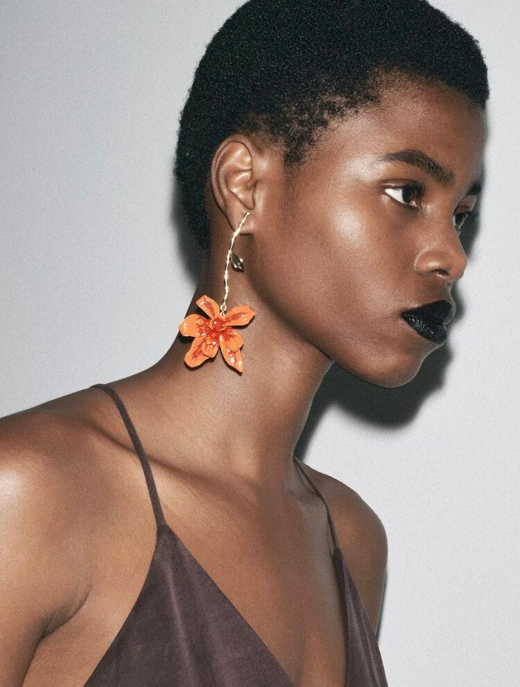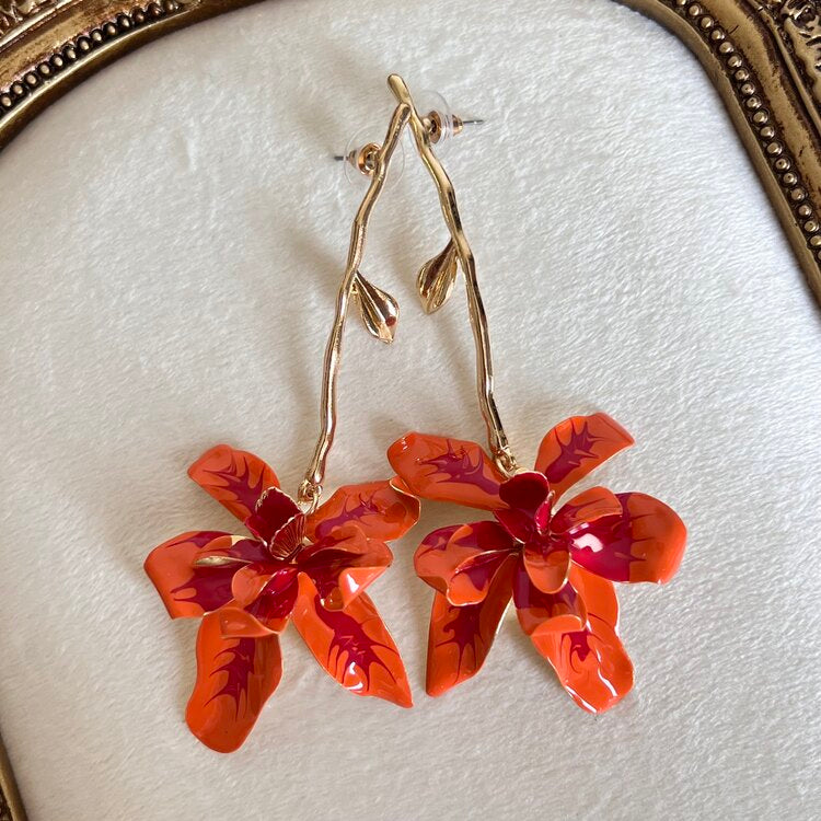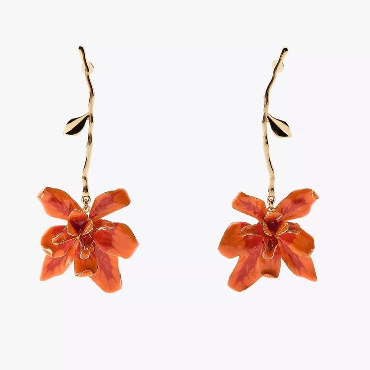 ZR Turuncu Çiçek Saplı Küpe